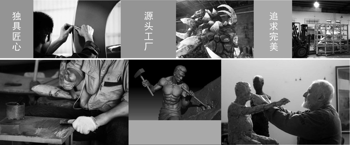 ★2013年蜕变,致力于房地产景观雕塑和酒店雕塑项目,丰富人们生活空间,让雕塑艺术更好的走进人们生活中去。经典项目:幸福海岸、三亚喜来登酒店等;